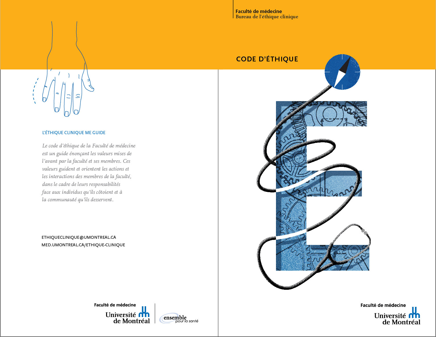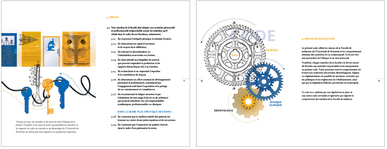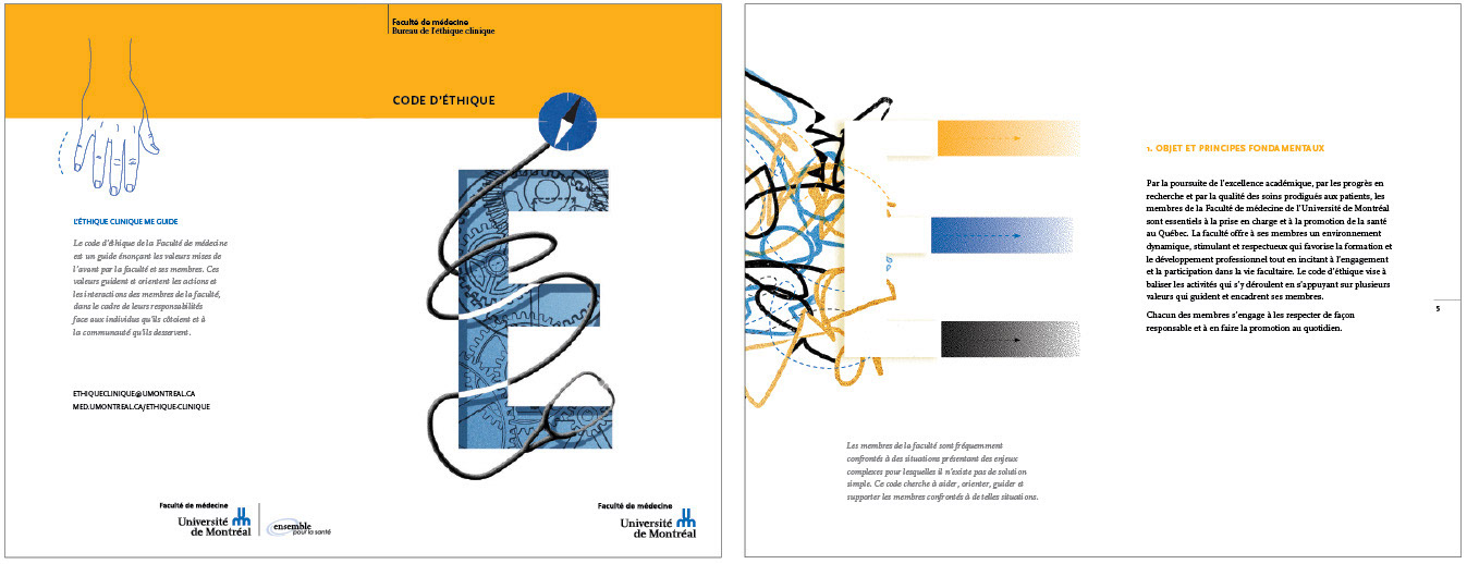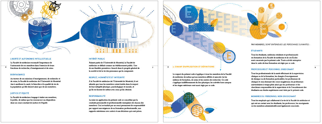 Graphic design and illustration of the Ethical Code of the University of Montreal - Medical Faculty 20 pages